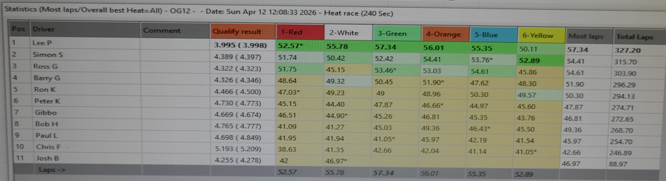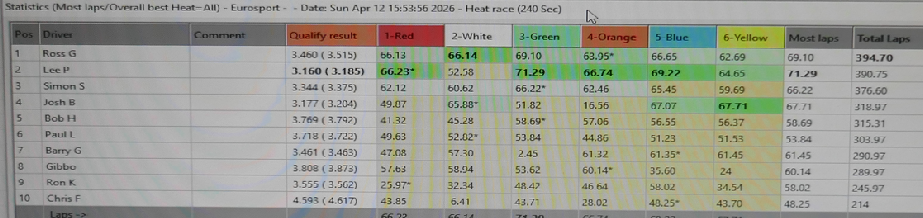 Thanks to Keith for the full results